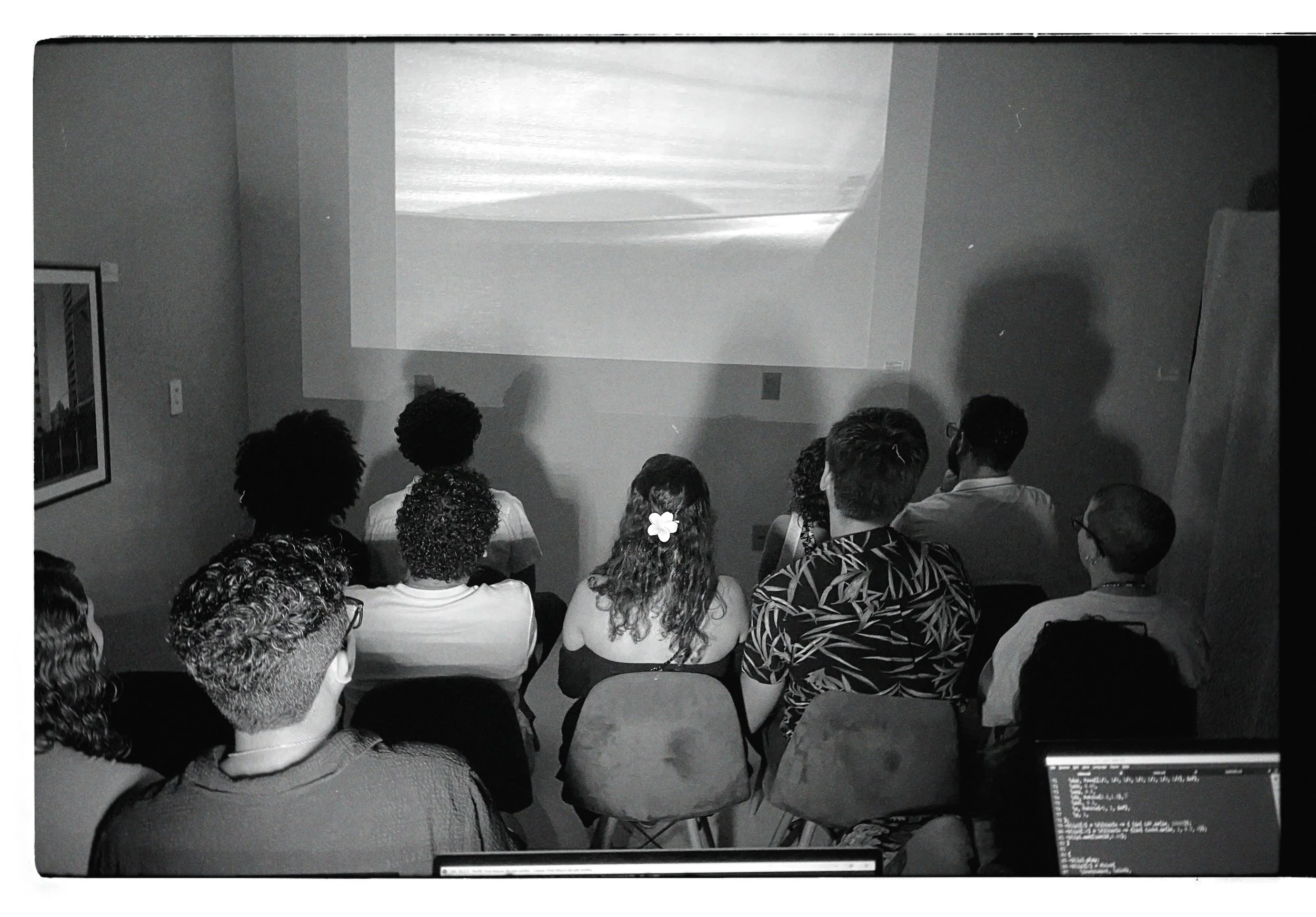 No segundo momento, “dois terços de um sonho”, poucas fotos (seis, mais exatamente) e muitas cadeiras, convidando o público para se sentar e ver um curta-metragem de mesmo nome que a série. Ali, não rolava apenas uma exibição do curta, mas sim uma performance ao vivo do mesmo. Victor Neves, músico da Luneta Mágica e artista manauara, tocava ali uma composição sua feita através da técnica de live coding, enquanto eu reagia a música com os vídeos deste curta segmentados.